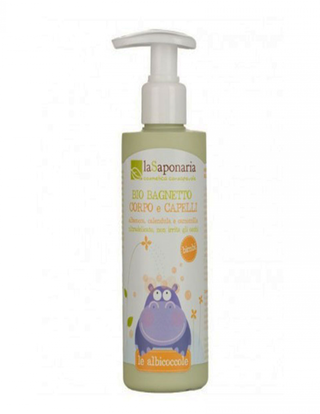 Deterge con dolcezza corpo e capelli dei più piccoli e preserva l'equilibrio fisiologico delle pelli delicate e sensibili. Contiene olio di albicocca ed estratti biologici di Hamamelis, calendula e camomilla dalle proprietà addolcenti, emollienti e lenitive. E' adatto anche alle pelli più sensibili ed è formulato per ridurre il rischio di irritazioni e lacrime da bagnetto.