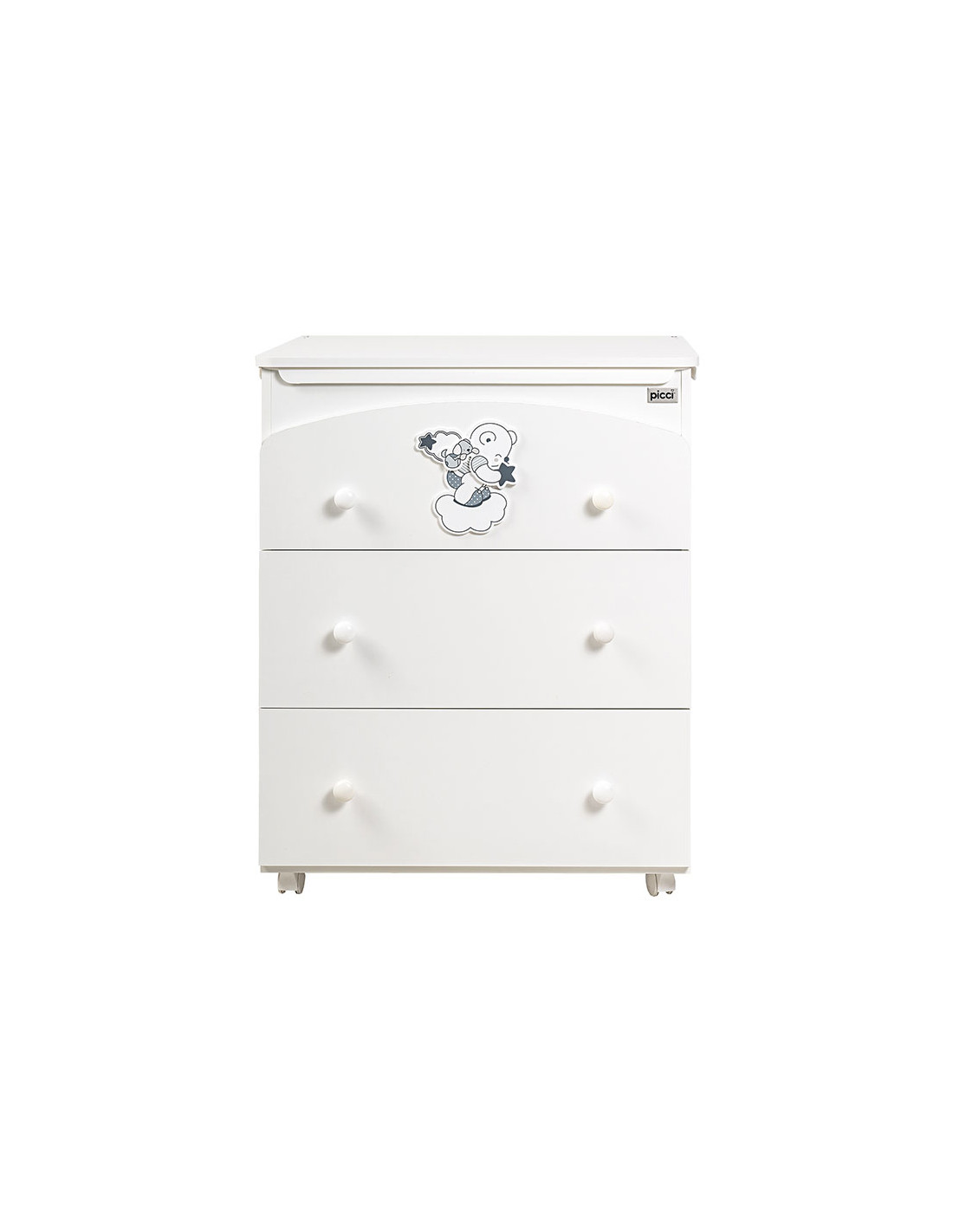 Cassettiera a 3 cassetti con decorazione applicata.
