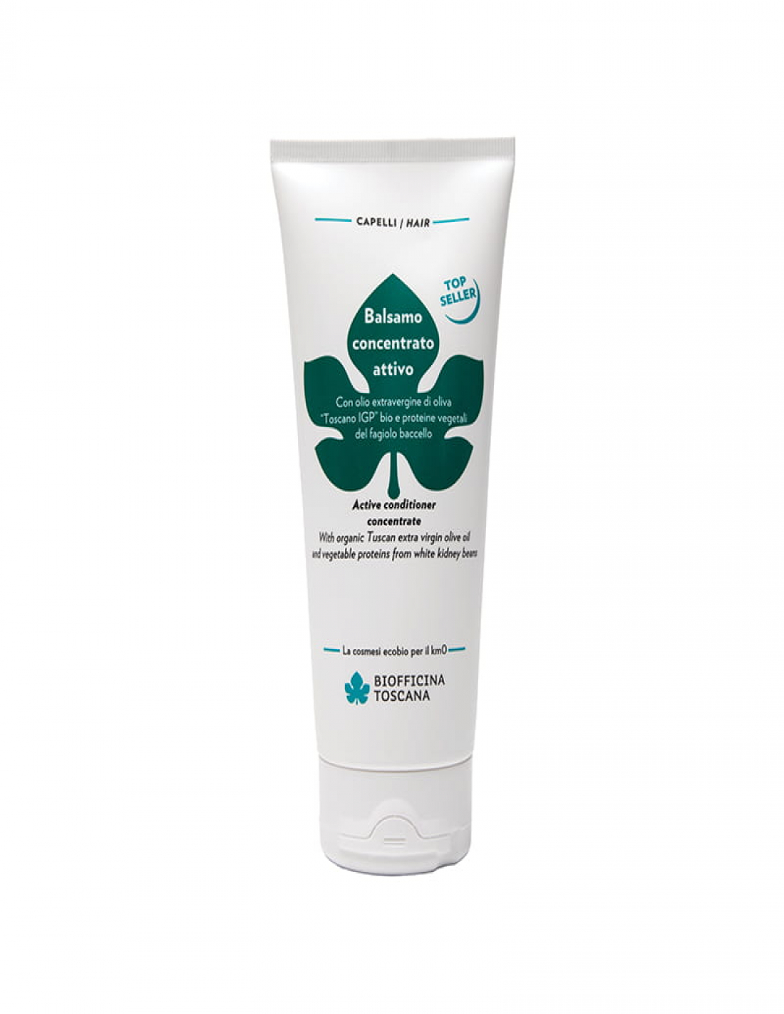 Il nostro balsamo concentrato attivo è formulato con olio extravergine di oliva "Toscano IGP" biologico e proteine vegetali del fagiolo baccello, una sinergia naturale studiata per rivitalizzare anche i capelli più danneggiati.